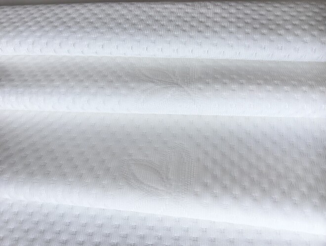 Матрасные ткани – это трикотажные материалы. Они мягкие, эластичные, обладают отличной воздухопропускной способностью. По сути это двухслойная ткань, полотна которой соединены специальной фигурной стежкой. Внутри находится слой наполнителя для большей мягкости, объема, плотности, гигроскопичности. Такой материал отлично дышит, приятен на ощупь и красиво очерчивает рельеф, при этом достаточно легко подгибается и прошивается в кант. Кроме того отличается отличной устойчивостью к разрывам, сминанию, хорошо держит и восстанавлиет форму.